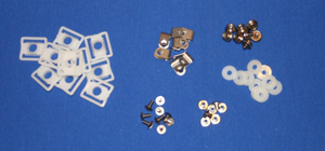 -Black neoprene rubber or white nylon dome screw buffers are shock absorbing washers that prevents paint from chipping