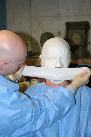 Once the first layer of plaster is complete the only uncovered part of the face should be the open nostrils.