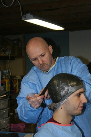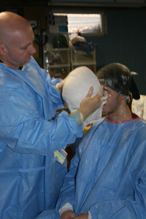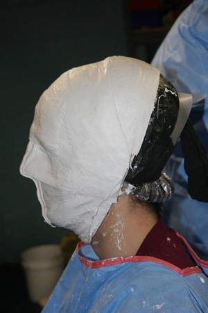 You should now have a nice smooth surface on the head with no air pockets or lumps from the hair. This is very important so a proper cast of the skull can be achieved.